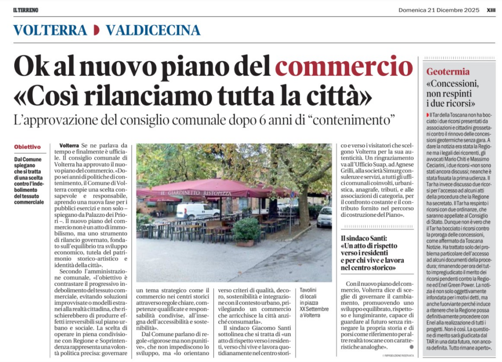 Nuovo Piano strategico del commercio Simurg ha terminato la fase di analisi e di regolamentazione del nuovo Piano Strategico del Commercio del Comune di Volterra